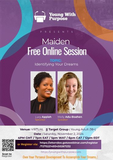 In the last decade, Lucy Appiah managed nonprofit programs that supported young people to pursue their educational goals through her roles as Associate Director, Yale Young African Scholars (Yale University) and as Senior Program Officer, Campaign For Female Education. These programs impacted the lives of over 3000 young women and over 300 young men. She is very passionate about inspiring and collaborating with young adults to take charge of their lives. In pursuit of her own dreams and calling, Lucy founded Young With Purpose and now works as a personal development coach and public speaker with faith-based groups and institutions that work with young adults, to guide them to align with God’s beautiful plans for their lives, through keynote/public speaking, workshops and one-on-one coaching.